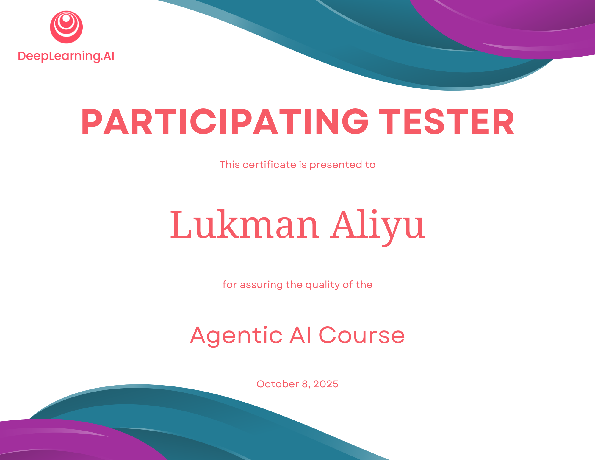 In late September 2025, I had the unique privilege of serving as one of course testers in the DeepLearning.AI Discourse forums, that supported the rigorous testing of the Andrew Ng’s latest course titled Agentic AI Course